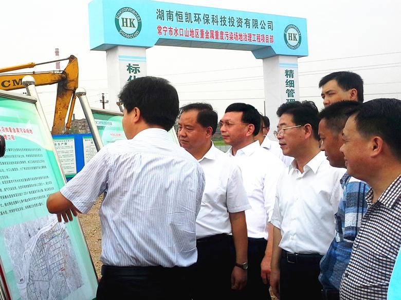 8月25日,省委常委、常务副省长陈肇雄一行深入我公司负责的常宁市水口山地区重金属重度污染土壤治理工程项目一线视察工作。衡阳市委书记、市人大常委会主任李亿龙,市委副书记、市长周海兵一同参加调研。恒凯公司副总经理骆金辉陪同调研。